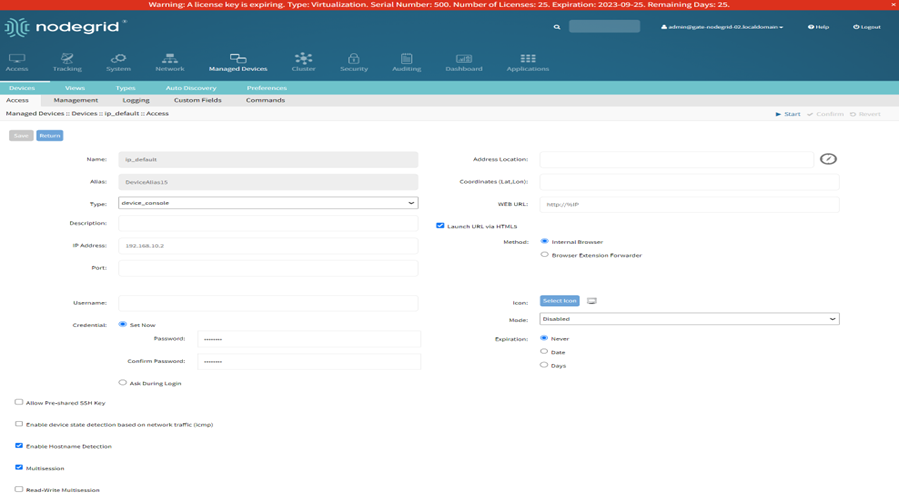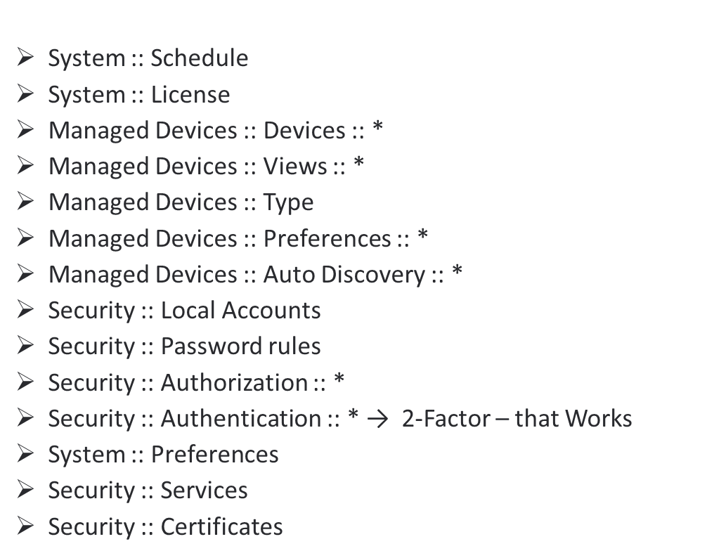 including the Password Rules Licenses, Managed Devices, and AAA