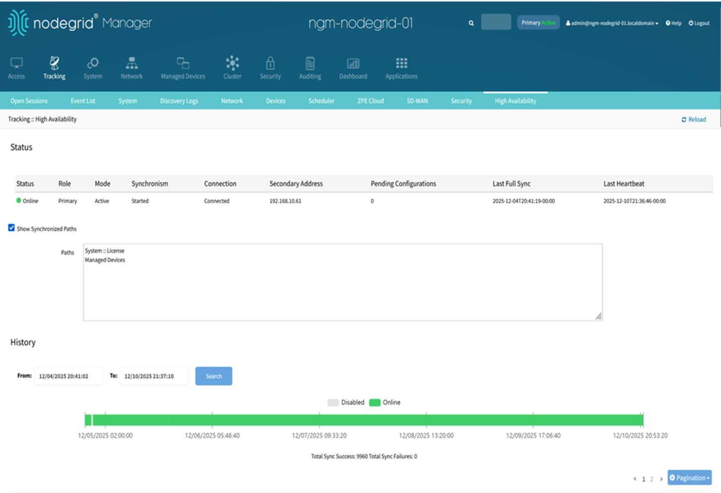 Under > Tracking > High Availability>