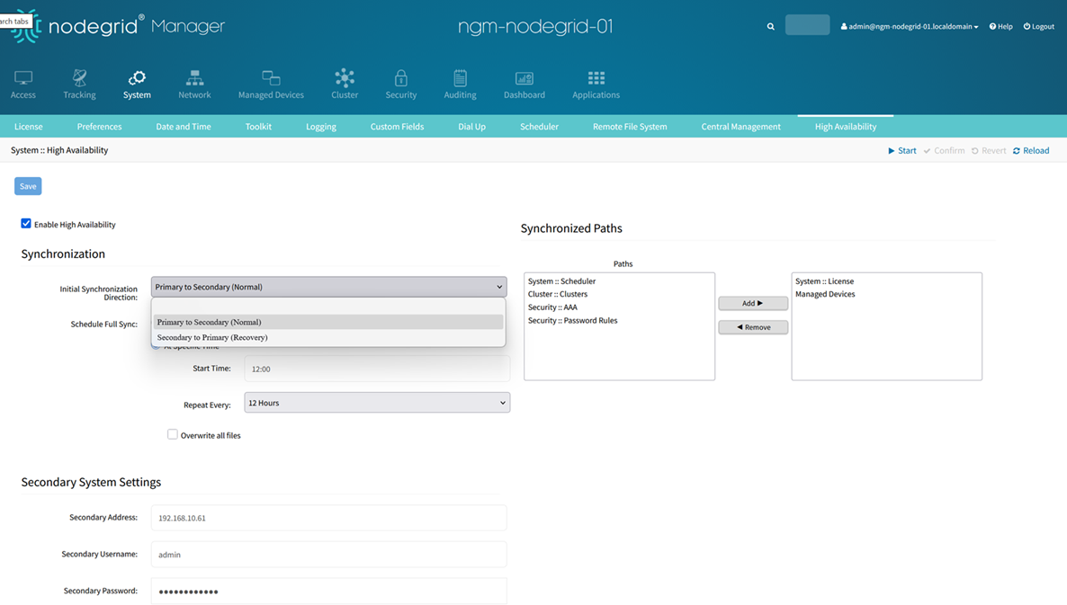 HA Secondary Configuration