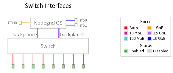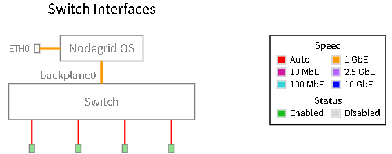 - To manage the device, you must use either the ETH ports (which are part of Nodegrid OS) or Backplane interfaces (internal links between Nodegrid OS and the switch).