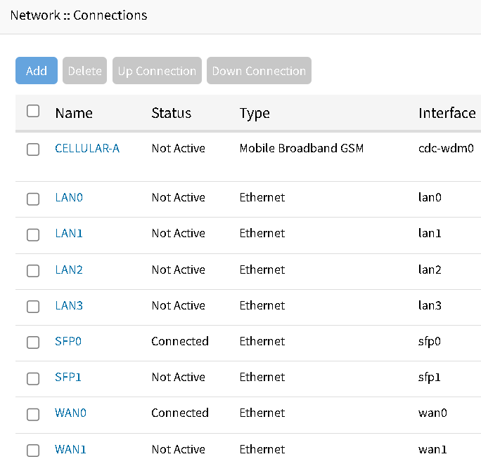 Typically, the network ports (ETH, SFP, CELLULAR) displayed under Network :: Connections are not in the same Layer 2 domain as the switch ports (or between themselves). This distinction introduces certain requirements depending on your implementation, so understanding this separation is critical for proper configuration. The Network :: Connections ports can be configured to have an IP address (and VLAN also) but the switch ports are restricted to the Layer 2 domain and cannot be managed this way.